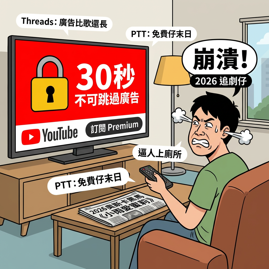 這兩天打開家裡的電視,準備像往常一樣當個快樂的「沙發馬鈴薯」時,你是不是也發現哪裡怪怪的?沒錯,那個原本只要倒數 5 秒就能按掉的廣告略過鍵,竟然消失了!取而代之的是長達 30 秒、逼著你從頭看到尾的「強制廣告」。這兩天不管是 PTT 還是 Threads,幾乎是一片哀嚎,甚至有網友崩潰大喊:「這根