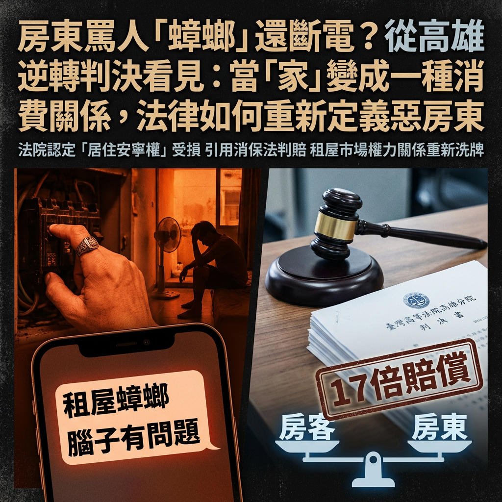 房東罵人「蟑螂」還斷電?從高雄逆轉判決看見:當「家」變成一種消費關係,法律如何重新定義惡房東