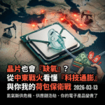 2026-03-13,當全球目光還聚焦在中東戰火對油價的衝擊時,科技產業界卻傳來了更令人心驚的消息——半導體可能面臨「斷氣」危機。不同於過去我們熟知的晶片產能不足,這次是因為半導體製程中不可或缺的關鍵氣體「氦氣」供應鏈告急。這不只是科技業的新聞,更是宣告「科技通膨」時代正式來臨的警鐘,當你的手機、電