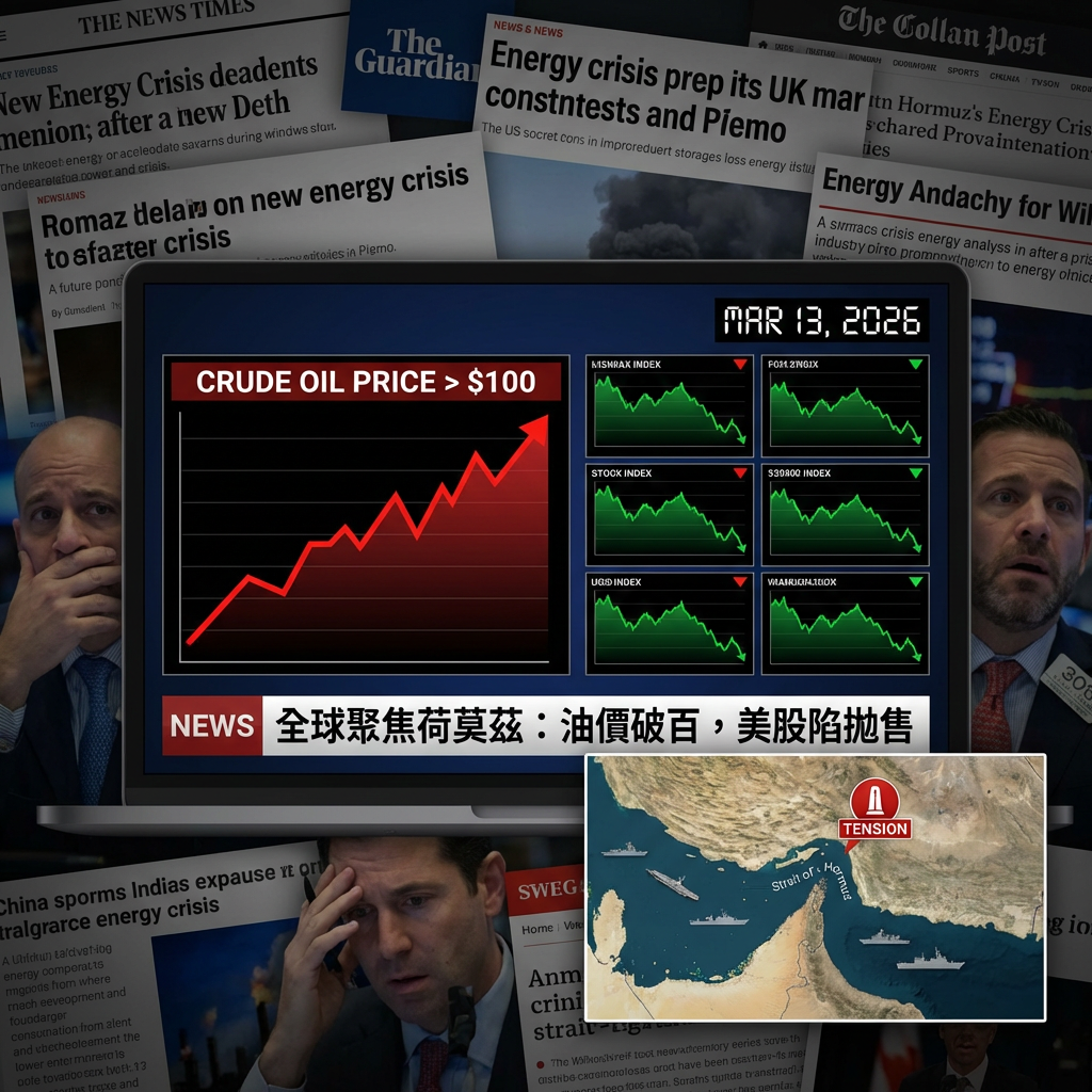 這兩天全球財經市場的空氣中,瀰漫著一股久違的焦慮感。就在 2026 年 3 月 13 日,當我們打開看盤軟體,映入眼簾的不僅是綠油油的股市,還有那條更令人心驚的紅色曲線——國際油價正式突破 100 美元大關。荷莫茲海峽的緊張局勢不再只是地緣政治新聞,而是直接衝擊你我荷包的現實風暴。這不單是加油變貴的